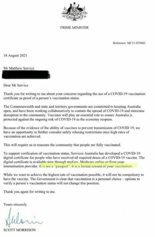 According to Scott Morrison: It is a formal reward of your vaccination.
