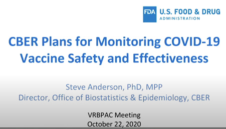 It is 22 October 2020, and Steve Anderson is presenting to the FDA Vaccines and Related Biological Products Advisory Committee.