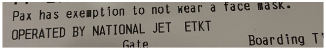 On return from Melbourne, this time I went to the (wo)manned station positioned at the centre of a collection of self-serve check-in stations. I told the lady about my exemption and that I’d like it added to my profile, she didn’t ask for proof, and brought up my profile and typed in that I had a mask exemption…voila…she then printed my boarding pass with the magic words on it.