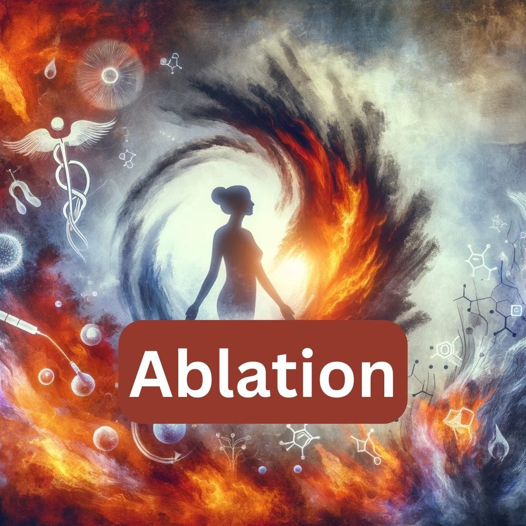 Ablation is a procedure that involves burning the endometrium to scar it permanently, which is meant to prevent menstrual bleeding. However, it can lead to severe, ongoing pain and other complications.