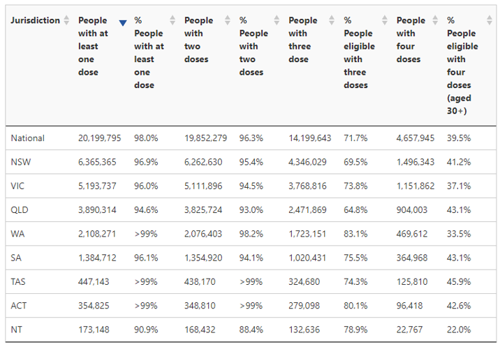 Vaccination numbers and statistics | Australian Government Department of Health and Aged Care