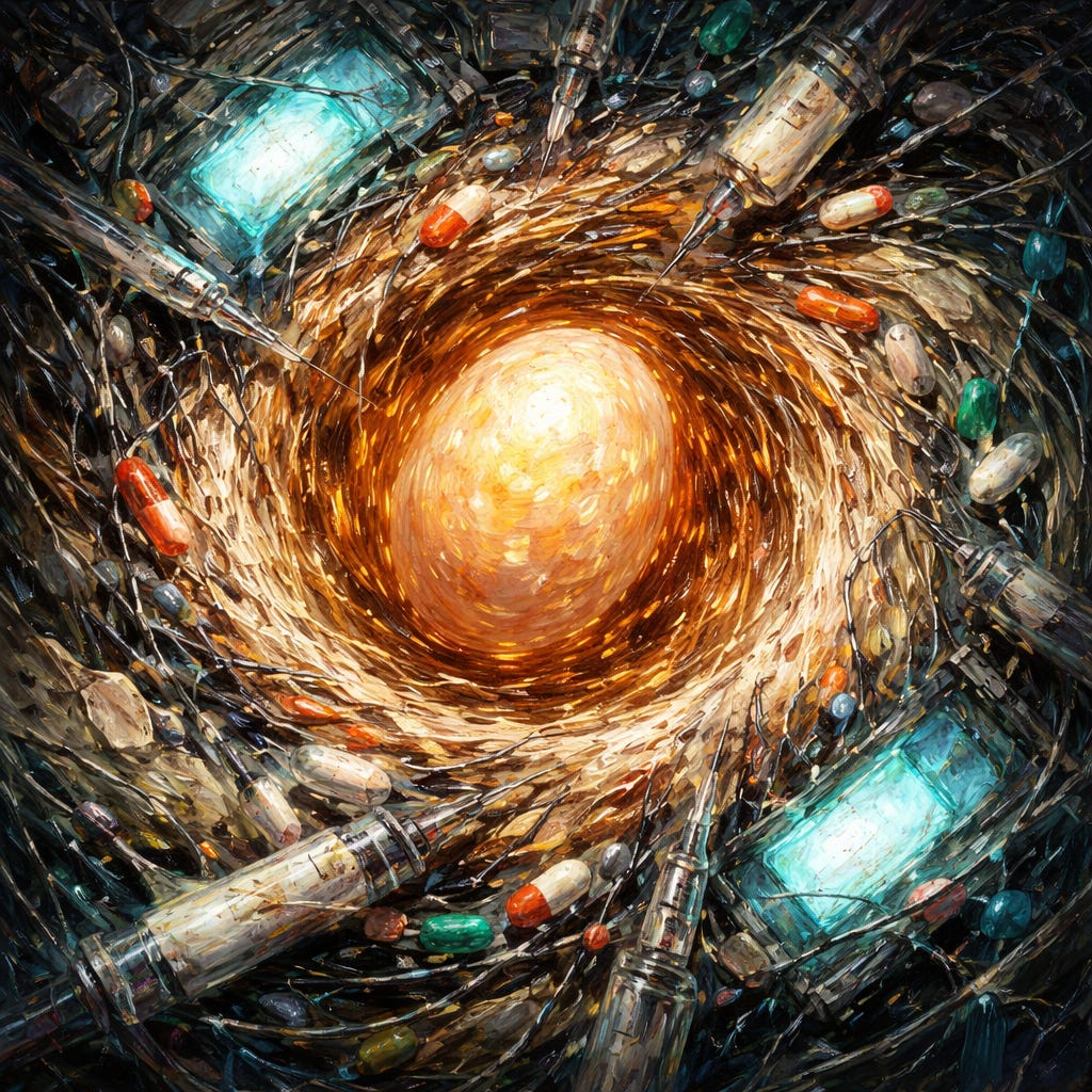 The system profits from the uncertainty it manufactures. You weren’t a patient before you wanted a baby. Now you are, and you’ll remain one—through conception, pregnancy, birth, and beyond. The optimization was never about preparing your body. It was about preparing you to be managed.