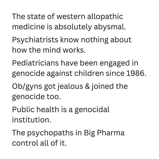 Result: Junk science is laundered and given the government seal of approval. Toxic, deadly, and expensive drugs flood the market causing widespread iatrogenic injury. Vaccines that cause net harms are mandated for school. Over 50% of the population suffers from chronic illness resulting from iatrogenic injury. Widespread Covid vaccine injury causes supply chain shortages, inflation, and impaired military readiness.
