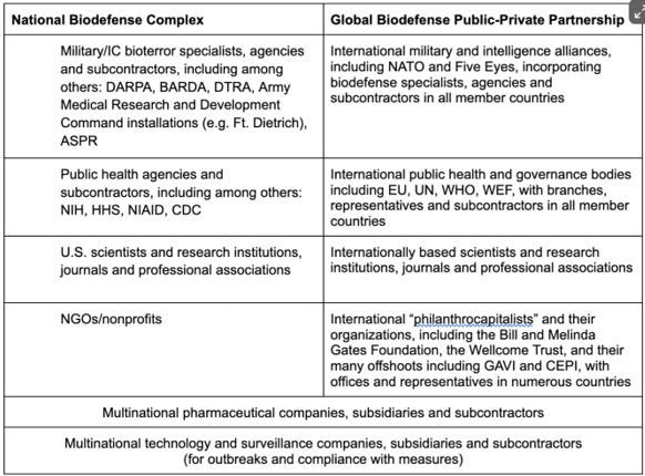 When I mapped Davis’ list of capitalist stakeholders and their partners onto the specific entities involved in the Covid response, I was able to conceptualize the Biodefense Global Public Partnership (and its manifestation on a national level) as a giant TOO-BIG-TO-FAIL conglomerate: