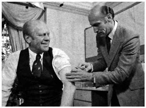 Now there is no doubt he did not have swine flu vaccine. They would not have given it to him, no way! But then he invited all the news media people that were there to line up and have theirs. Only one man volunteered and he was the White House press secretary, the rest refused to have it. And of course the other part of the story, which is history now, is that people started to become ill or drop dead in the buildings where they had received their injections. There have been several huge settlements, I think they are still going on now, haven’t finally been settled yet. President Ford passed a special act in Congress so that you couldn’t sue the manufacturers of the vaccine, you had to sue through the government.