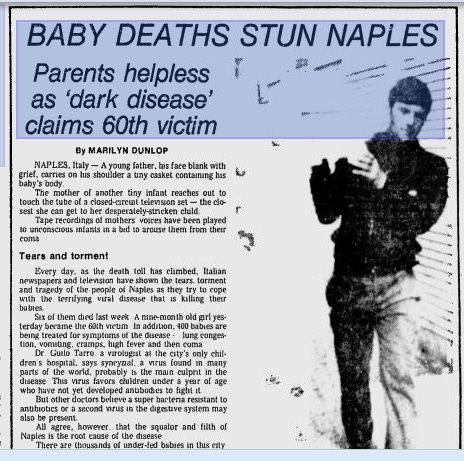 The other thing of interest is that in 1977-78 there was an epidemic of a very peculiar disease in Naples, Italy. They called it the dark disease of Naples where infants and children would suddenly become unconscious without any special reason and autopsies would not really reveal a cause.