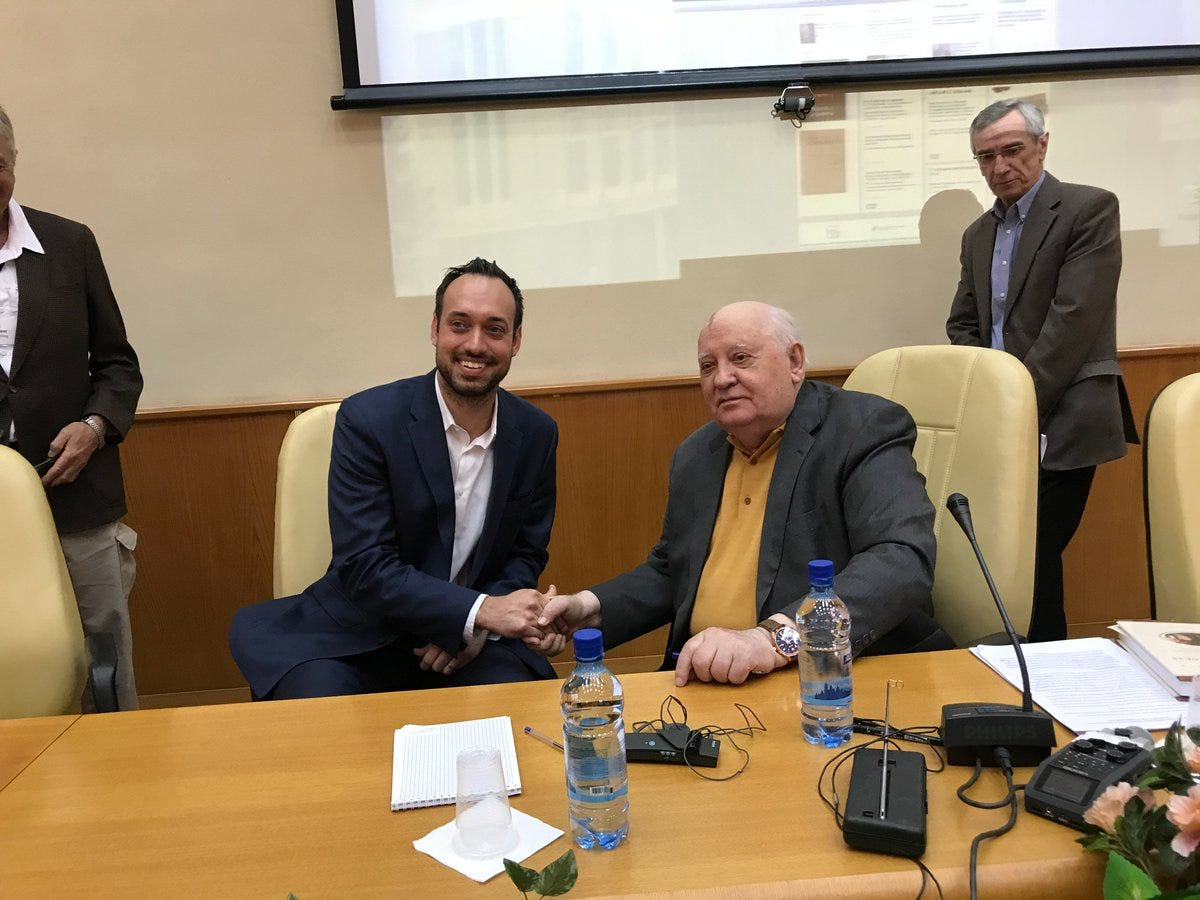 In 2017 I went on a “citizen’s peace diplomacy” trip with 30 Americans for 3 weeks to Russia with Sharon Tennison’s ‘Center for Citizen’s Initiatives’. We got to hang out with Mikhail Gorbachev among other interesting folks (e.g. Vladimir Pozner). It’s funny, Gorbachev was supposed to attend my Geneva graduation in 2009 (he was to receive an honorary degree). He couldn’t make it, but his right-hand man Pavel Palazhchenko made it instead. Pavel was with us in 2017 in Moscow.