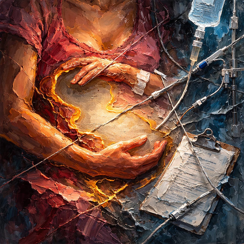 The absence of the integrative study is not a gap in knowledge. It is a gap in willingness. The system that profits from each individual intervention has no incentive to measure what they do collectively. The research that would settle this question — a large prospective cohort tracking every intervention from admission to discharge, measuring cumulative exposure against validated depression outcomes at six weeks, three months, and one year — is straightforward to design. It has not been designed because the answer is commercially inconvenient. A finding that intervention density predicts depression would indict the standard model of hospital birth. No obstetric department will fund that study. No pharmaceutical company will sponsor it. No career will be advanced by publishing it.