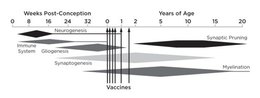 Since 2004 there have been eleven groundbreaking discoveries in separate but related scientific fields that, taken together, reveal the cause of autism. Because of this science, we now know that autism is created by immune activation events in the brain during critical phases of brain development, typically by the time a child is thirty-six months old, and that these immune activation events in the brain can be triggered by the aluminum adjuvant in vaccines.