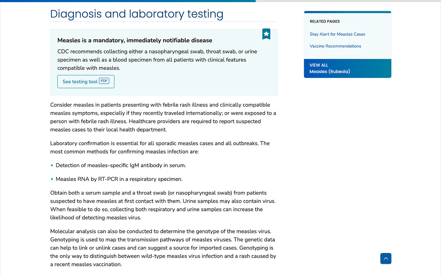 “Laboratory confirmation is essential for all sporadic measles cases and all outbreaks.”