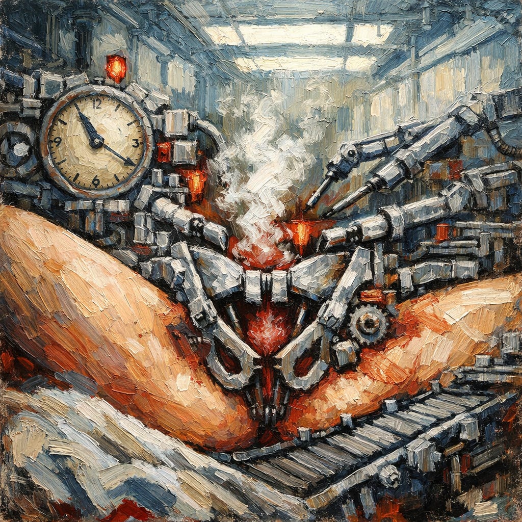 When it goes wrong, it goes catastrophically wrong. When it goes right, it was probably unnecessary—the product of a cascade that forced labor into timelines and positions the body never chose.