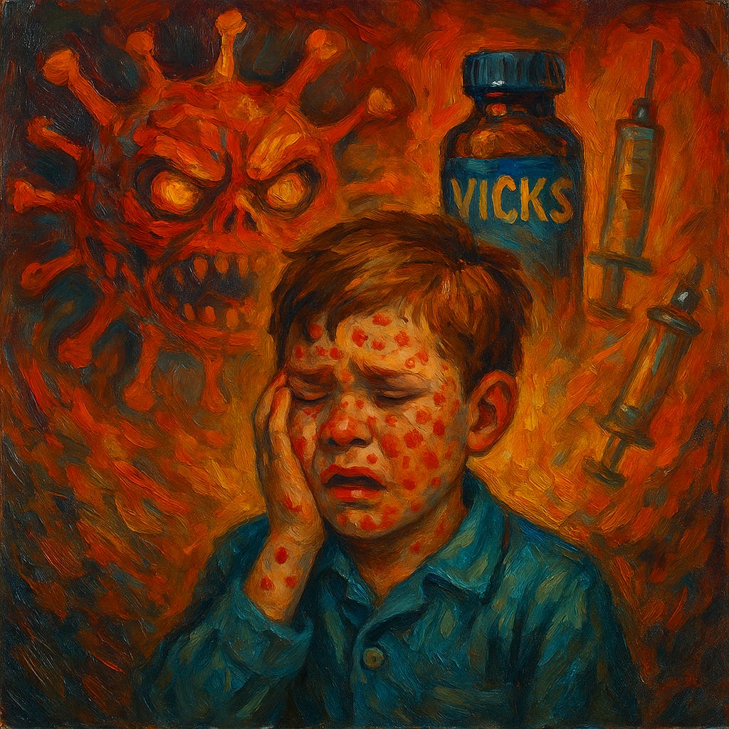 The narrative of measles as a viral disease, long enshrined in medical orthodoxy, rests on a foundation of unproven assumptions and inconsistent experimental evidence, as meticulously detailed in Aldhissla’s The Measles Hoax. This article challenges the conventional virological framework by tracing the historical missteps that birthed the measles virus concept, revealing a story of presupposition rather than observation. As early as 1924, researchers like Dr. Andrew Sellards noted the absence of consistent microbial evidence in measles patients’ bodily fluids, yet clung to the notion of an elusive “filtrable virus” based on irregular animal experiments (Measles). This pattern of circular reasoning—where disease manifestations were taken as proof of a virus—echoes through decades, with virologists like Wendell Stanley in 1948 asserting that “the sole means of recognizing the existence of a virus is provided by the manifestations of disease.” Aldhissla’s work aligns with my broader critique of virology as a “meta racket” as I am convinced that measles is not a “viral” illness but a detoxification process. This perspective finds resonance in What Really Makes You Ill?, which argues that symptoms like those of measles stem from environmental toxins or stressors, not microbial agents. My recent curiosity about petroleum-based products like Vicks VapoRub, developed in 1894 as a chest rub with menthol and camphor in a petroleum jelly base, introduces a provocative thread: could such substances, widely applied to children’s skin, contribute to the body’s need to detox, manifesting as measles-like symptoms?