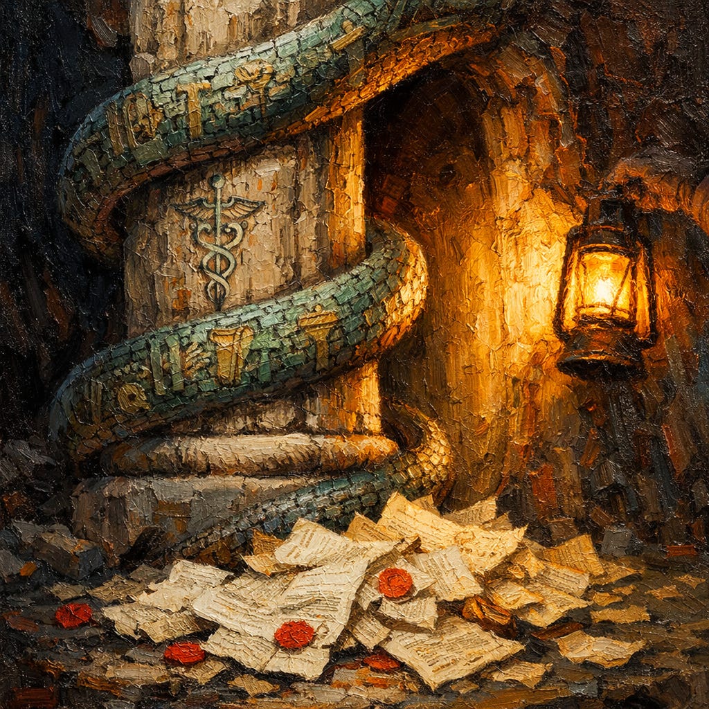 1. Ancient priest-physicians fused healing with religious authority, using fear of invisible forces to maintain power over patients. Modern medicine replaced demons with germs but preserved the structural relationship: an expert class claiming exclusive access to invisible causes, demanding submission on faith, and punishing dissent.