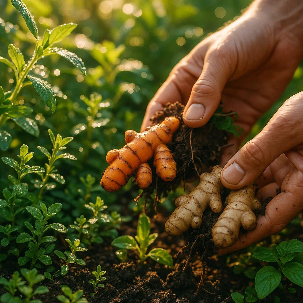 Ginger extract demonstrated 6-8 fold better potency than lansoprazole (Prevacid) at inhibiting gastric acid production through H+,K+-ATPase inhibition¹¹⁰. Ginger also contains powerful protease enzymes which help to break down proteins which otherwise would putrefy and cause acid-like irritation from hydrogen sulfide. Fresh ginger root at 200mg/kg body weight showed 86% protection against stress-induced ulcers, matching pharmaceutical protection while providing antioxidant benefits and anti-H. pylori activity¹¹¹. Turmeric at 3,000mg daily (600mg × 5 times) achieved 72% ulcer healing after 8 weeks, comparable to omeprazole results¹¹², while deglycyrrhizinated licorice (DGL) at 760mg three times daily showed 91% ulcer healing with only 8.2% relapses versus 12.9% with Tagamet¹¹³.