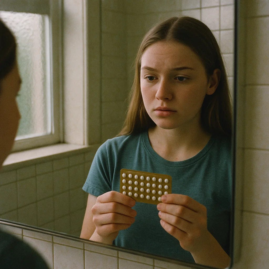 The neurotransmitter disruption is comprehensive: reduced GABA in prefrontal regions⁴⁹, lower serotonin receptor binding⁵⁰, decreased striatal dopamine⁵¹, and elevated stress hormones⁵². A single-subject longitudinal study tracking the same woman through natural versus contraceptive cycles found completely different brain network organization on hormonal contraception⁵³ - the absent hormonal cyclicity fundamentally rewires brain connectivity. With depression risk peaking at six months after initiation and persisting even after discontinuation⁵⁴, millions of young women are unknowingly altering their brain development during the most vulnerable neurological period of their lives.