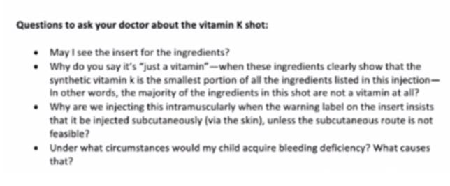 What I especially like about his Vit K injection is that it’s NOT on the vaccine schedule, yet you are still coerced into getting it, so it might as well be. This time the “vaccine” halo isn’t relied upon, instead the “vitamin” halo is used. I truly admire their genius at language use and linguistic engineering.