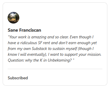 Unbekoming Subscriber TestimonialsThis Substack is a FREE Public ResourceUnbekomingJan 26, 20241043ShareThank you for reading Lies are Unbekoming. This post is public so feel free to share it.ShareLeave a comment