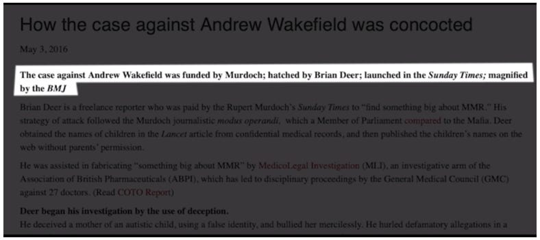 I didn’t know that Murdoch had a primary hand in going after Wakefield and destroying his career.