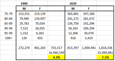 You will find a similar theme all over the Western developed world. A record breaking portion of the population aged 75+.