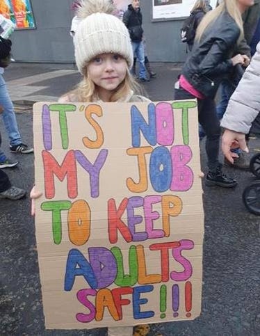 I’ve been thinking about human shields recently, and those thoughts connected with this banner. It’s not this girl’s job to be a human shield for the old and the afraid.