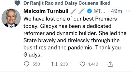 An ex-Prime Minster who cannot see or call out corruption even when it stares him in the face, while virtue signaling his double jab status.