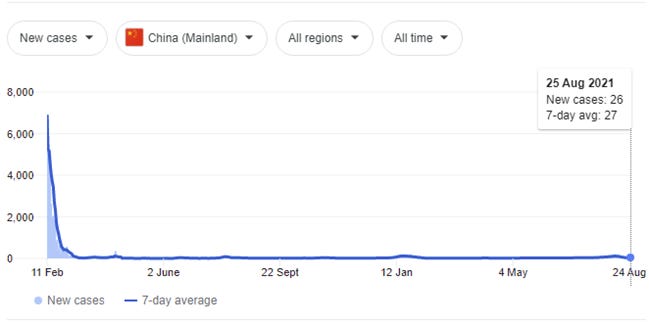 The virus comes out of China, and this is what their cases chart looks like over the last 20 months.